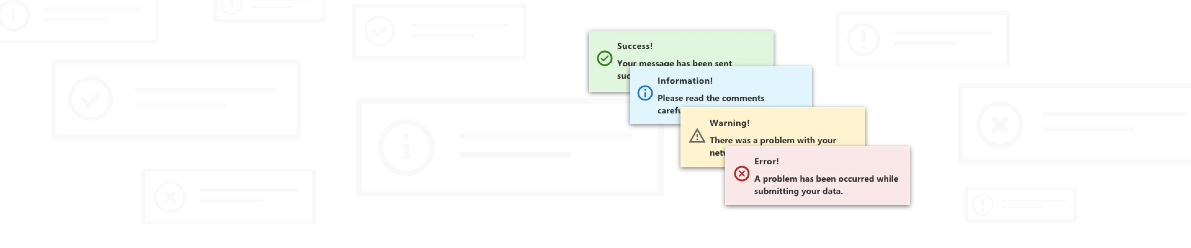 Users can easily design common Angular toast notifications using built-in classes such as alert, success, warning, information, and error.