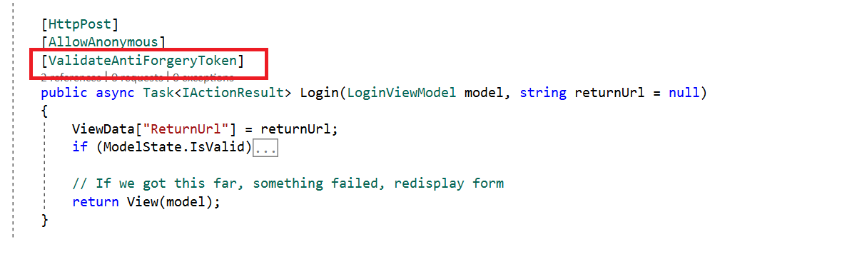 ![Adding the [ValidateAntiForgeryToken] Attribute to the [HttpPost] Method of the Form Action.](https://www.syncfusion.com/blogs/wp-content/uploads/2019/11/Adding-the-ValidateAntiForgeryToken-Attribute-to-the-HttpPost-Method-of-the-Form-Action.png)
