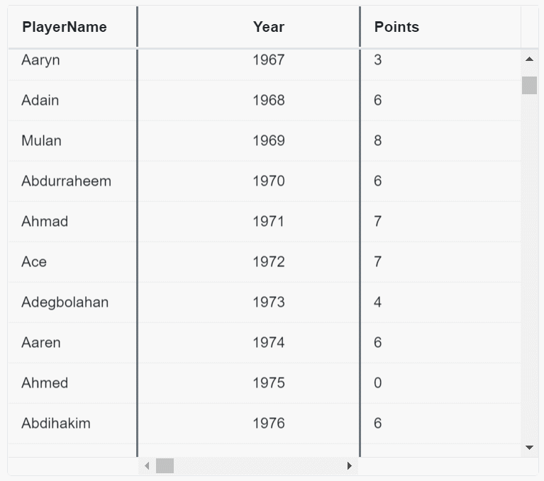 Frozen Column Virtualization in Blazor DataGrid - Data annotations: Defines rules to the model classes or properties to perform data validation and display instructions to provide the appropriate data.