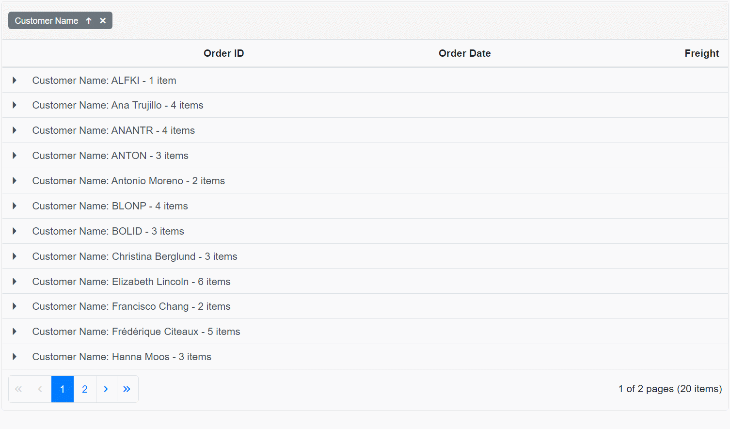 - Lazy load grouping: Loads a huge amount of grouped data on demand without any performance degradation as shown in the following GIF image.