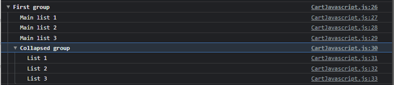 9. Group, GroupEnd, and GroupCollapsed methods