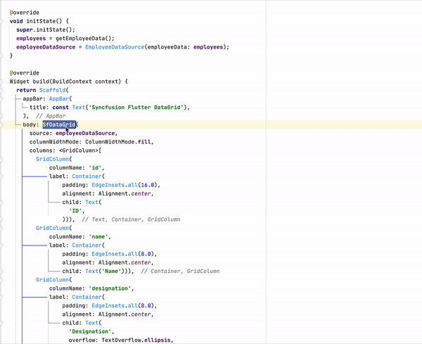 Most of the time, we move the cursor from the start to the end to select a widget’s code. To simplify this tedious process, click a widget and then press Alt+Up arrow key on Mac or Ctrl+W on Windows to easily select all of the widget’s code.