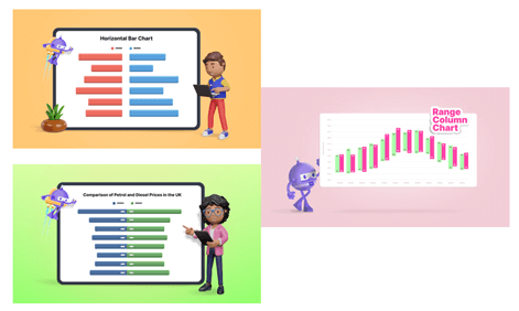 - Range Column Chart to Compare Average Temperature Variations in Rome: Visually depicts temperature variations in Rome, enabling viewers to compare average temperatures over a specific period.