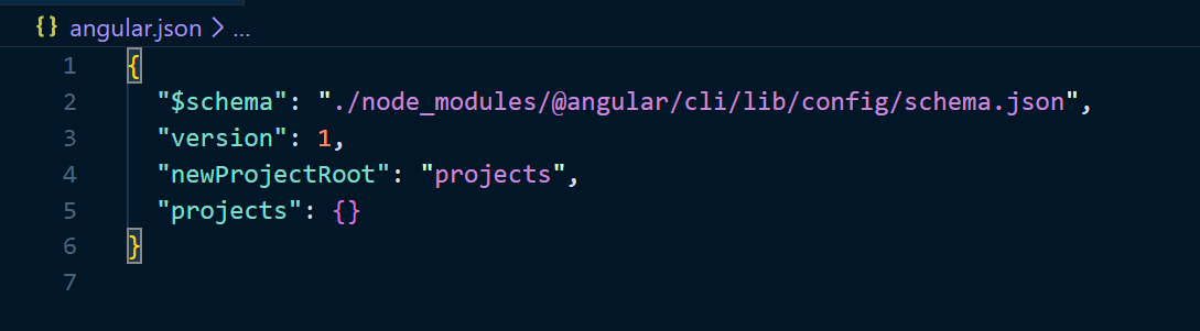 See the following screenshot of the angular.json. As this is an empty workspace, there is no defaultProject and the project’s properties are empty.
