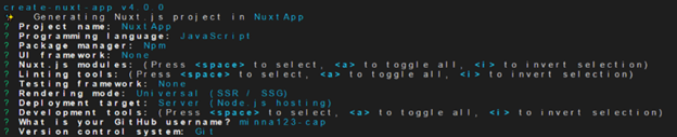 After you’ve installed them, you can use the following command to create a Nuxt.js project.