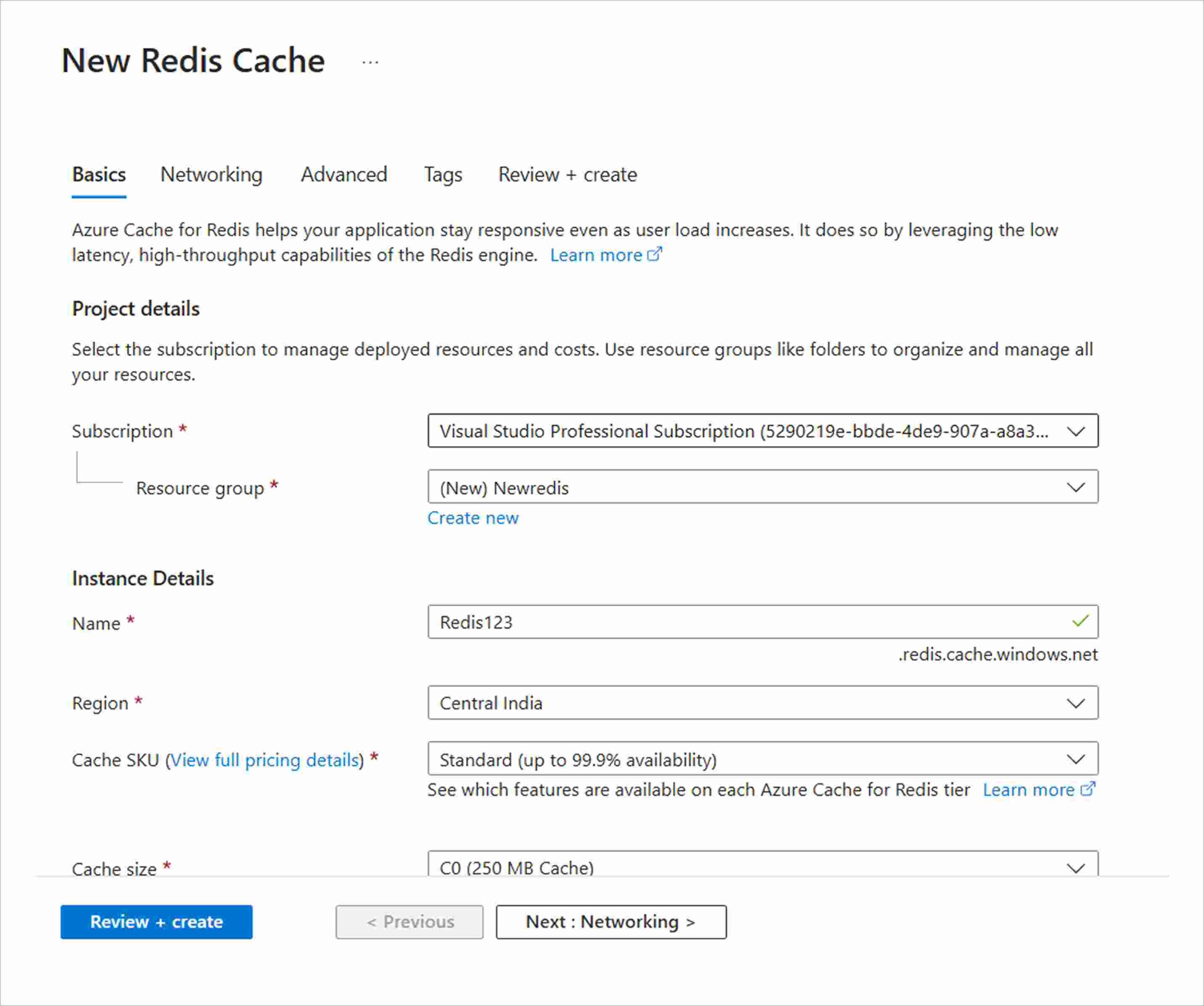 Step 1: Create a Redis cache