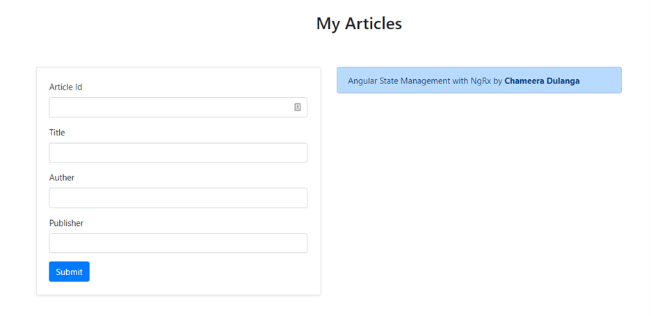 After registering the store in appConfig, you can start using it in your components. Here, we will be using the AppComponent to display and add articles to the store.