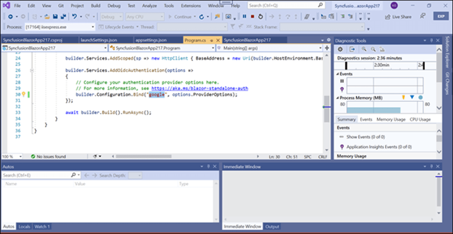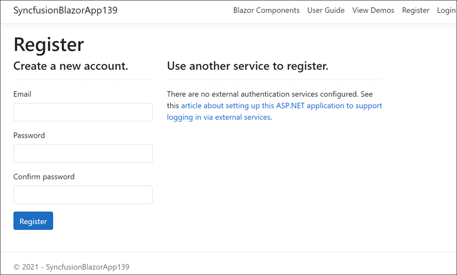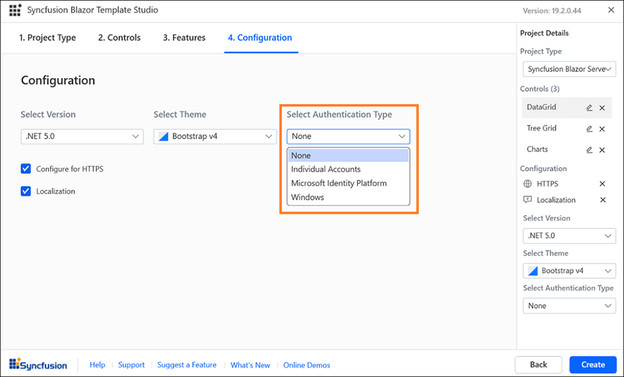 Creating Syncfusion Blazor App with Authentication using Blazor Template Studio