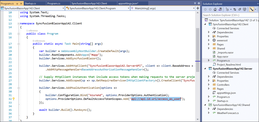 - Finally, configure the scope API in the client project program.cs file (highlighted place in the following image).