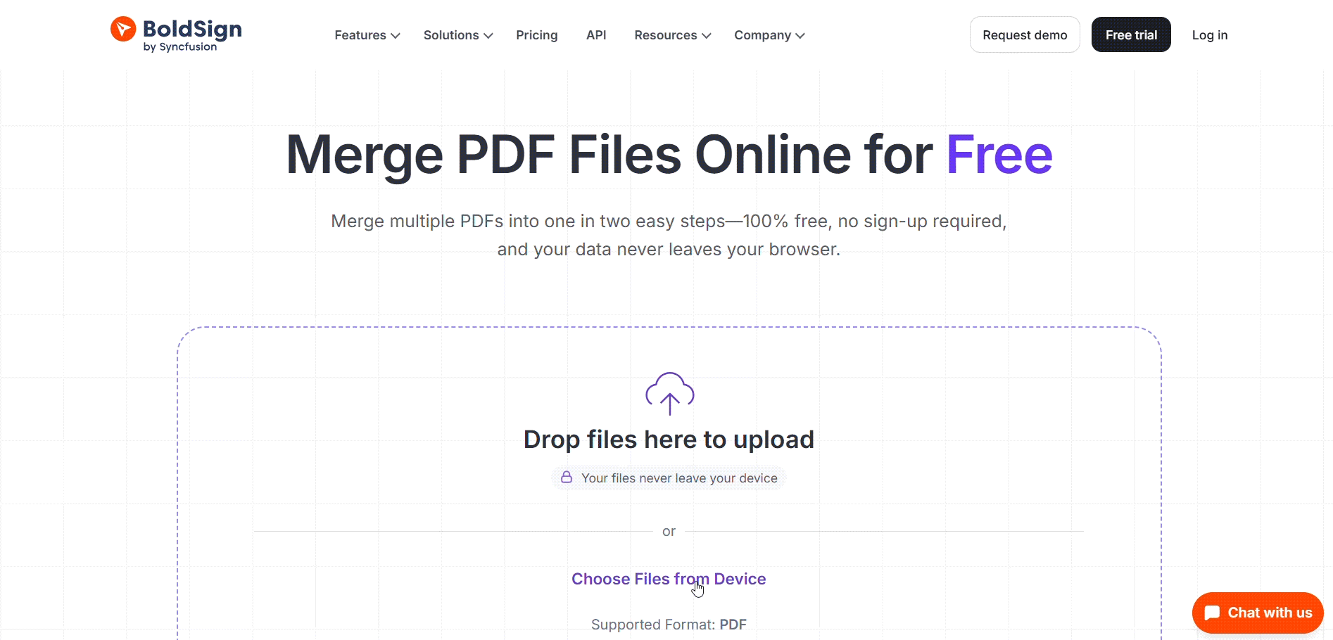 BoldSign is thrilled to announce the launch of our free PDF merge tool, a powerful and user-friendly solution designed to simplify the process of combining multiple PDF files into a single, cohesive document. Whether you’re a student compiling study material, a professional organizing reports, or a freelancer managing client documents, this tool is crafted to meet your needs at no cost and without complexity. With no sign-up required and unlimited file merging, the BoldSign PDF merge tool streamlines your workflow, all for free! Discover the benefits of merging PDFs on any device effortlessly and securely with BoldSign.