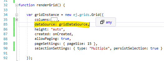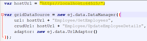 Note: Please refer to the Getting Started documentation to render the DataGrid in the JavaScript platform (ES5).