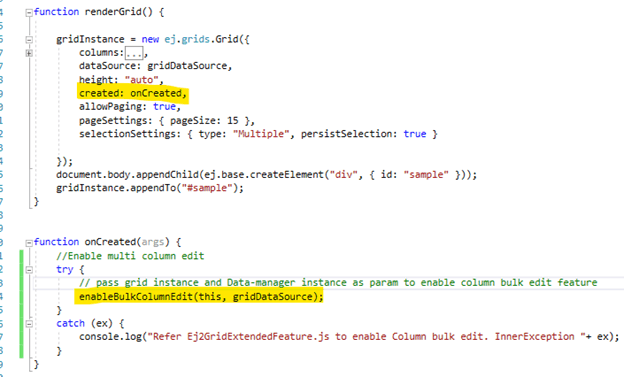- We should pass the DataGrid instance and Data Manager instance as arguments to enable the column bulk edit feature.