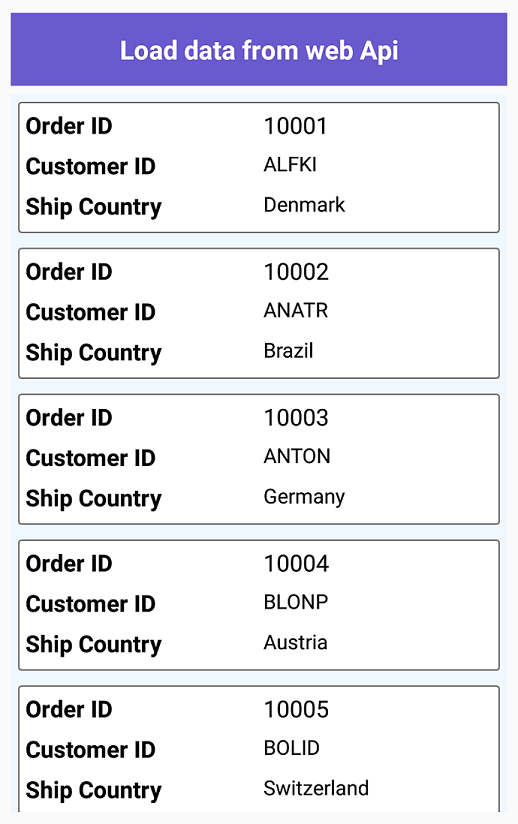 <Label Text="Fetched data from REST Api" BackgroundColor="SlateBlue" FontSize="18" FontAttributes="Bold" TextColor="White" VerticalTextAlignment="Center" HorizontalTextAlignment="Center"/>