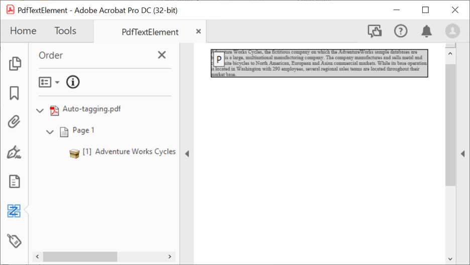 Accessible PDF created using C#Note: For more information about adding different tags in the PDF document, refer to the working with a tagged PDF documentation.