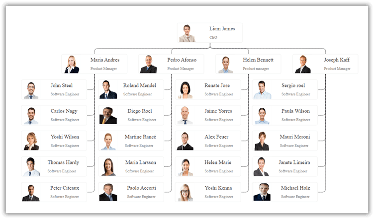 An organizational chart (also known as “org chart”) is a graphic representation of the internal structure of an organization or any other data collection. Employees can utilize org charts to learn about their department’s structure, as well as the structure of other departments.