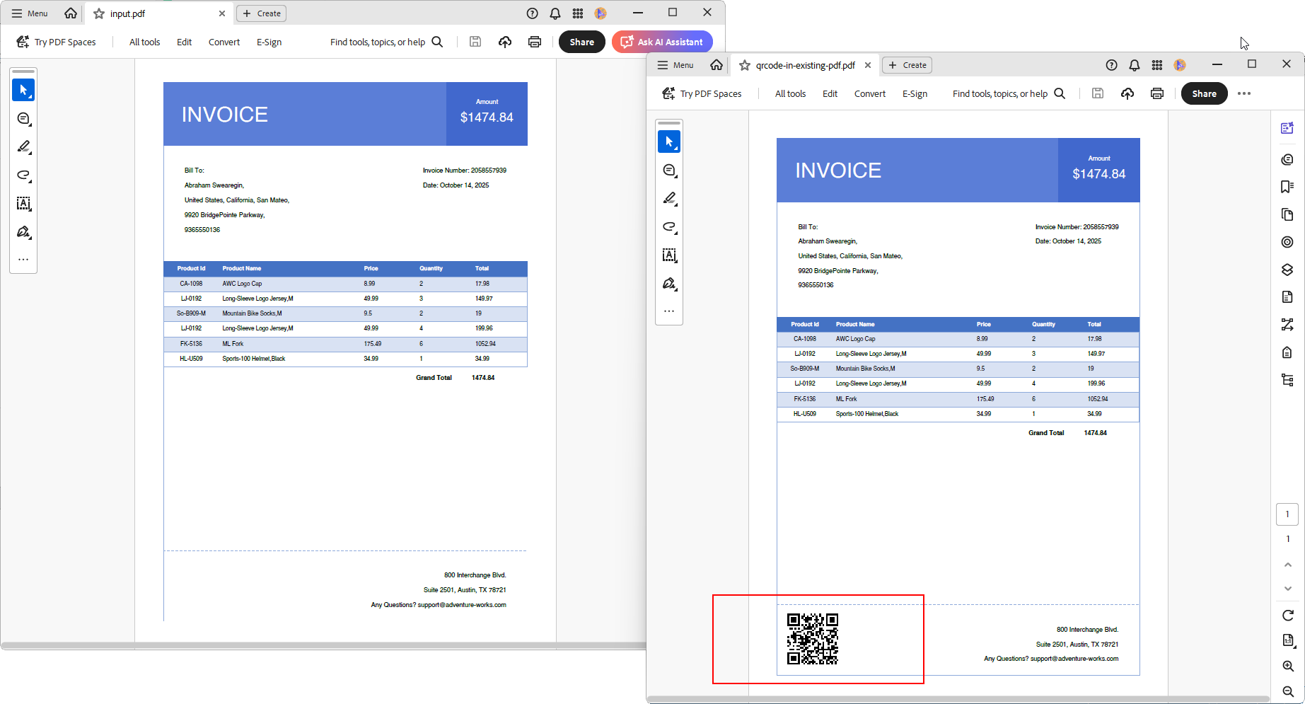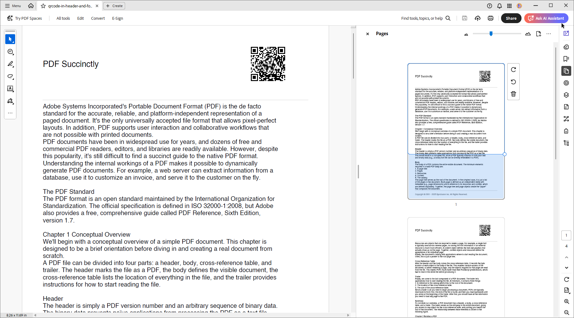 Refer to the following code example to add QR codes in PDFs’ headers and footers.