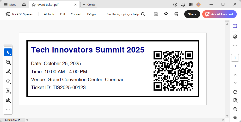 - Use case: PDFs for event tickets or invitations include QR codes for check-in, directions, or agenda downloads.