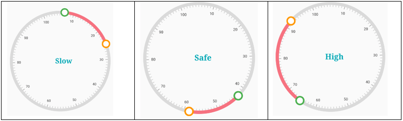 We are going to create a Flutter radial range slider with the use case of a pressure meter. This will  update the pressure status based on the selected range as shown in the following image.