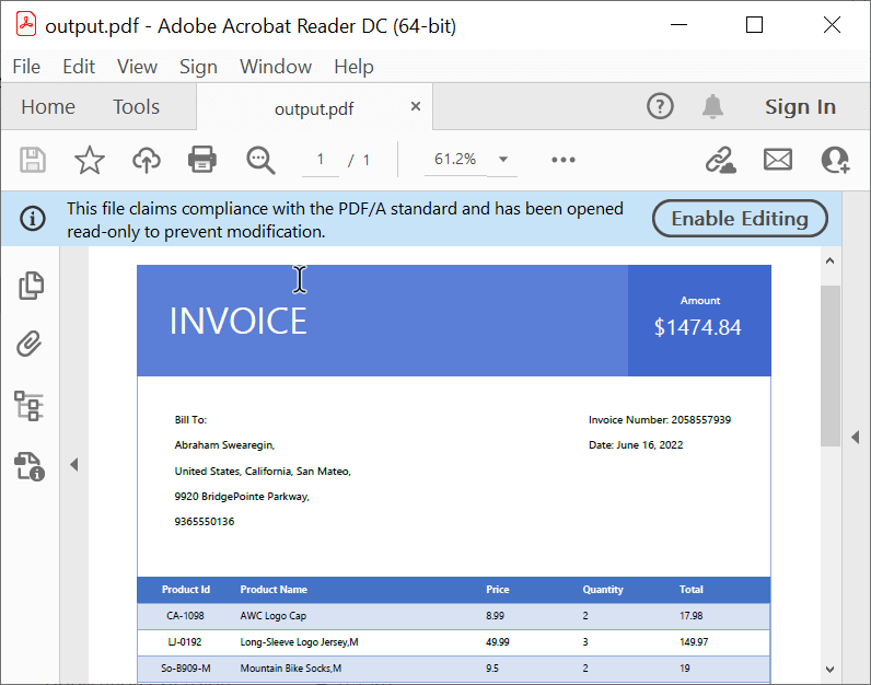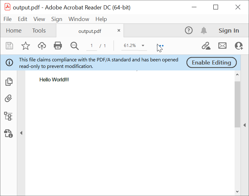 By executing the previous code example, we will get a PDF document similar to the following screenshot.