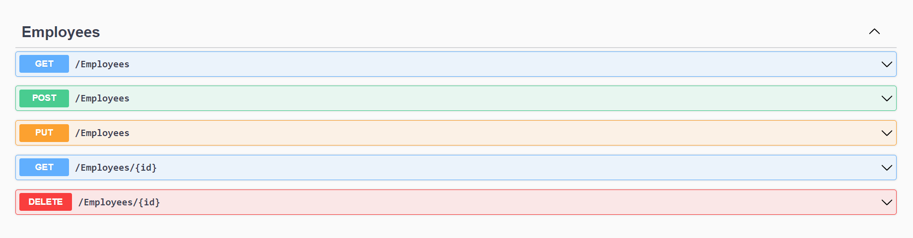 Swagger documentation displaying the REST APIsFirst, test the POST request, which is used to create an employee record.