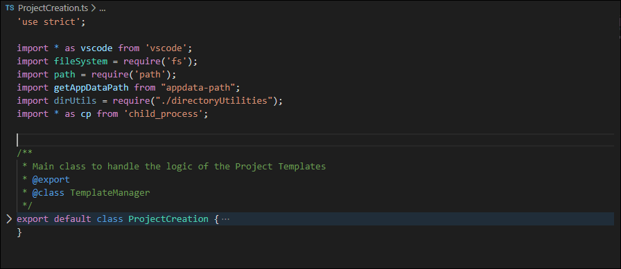 let projectCreation = new ProjectCreation(context, vscode.workspace.getConfiguration('projectTemplates'));