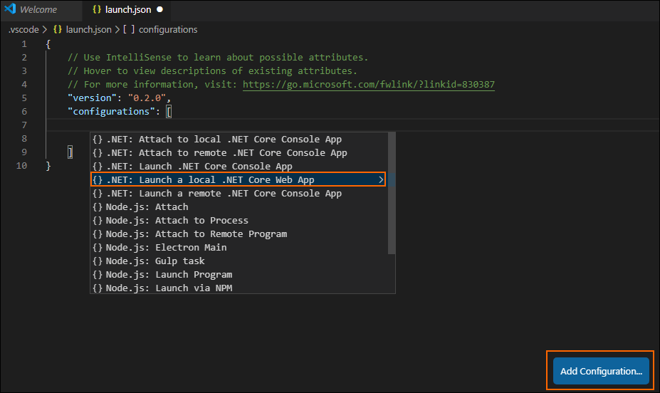 Step 4: Choose the .NET: Launch a local .NET Core Web App option as shown in the following screenshot.