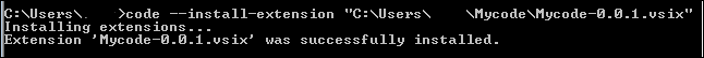 code--install-extension myExtensionFolder\myExtension.vsix |