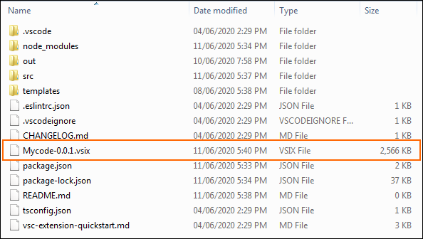 In VS Code, the VSIX file will not be created automatically, so we have to create one by using the VSCE command-line tool.