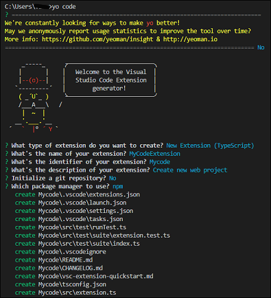 Step 3: Run the following generator command and wait for some time (approximately 5 minutes) for the extension generator to be loaded.