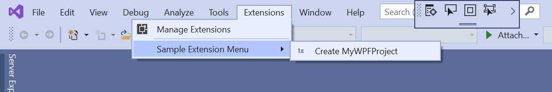 Now you can see the Create MyWPFProject under Extensions -> Sample Extension Menu.