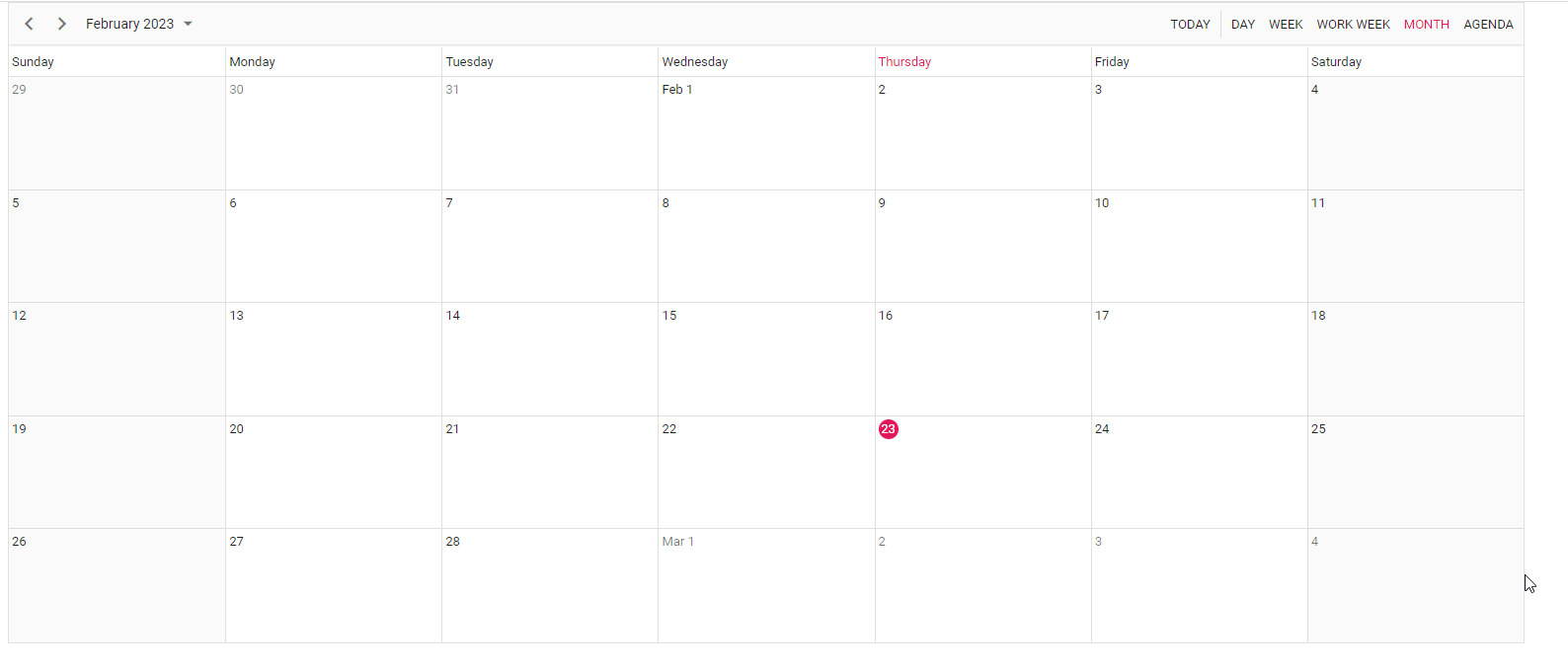 If the Scheduler’s dataSource holds the events collection with different field names, it is necessary to map them with their equivalent field name within the eventSettings property.
