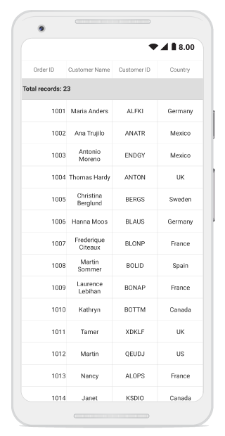 In the following screenshot, the data grid is sorted in ascending order with respect to the Customer Name column.