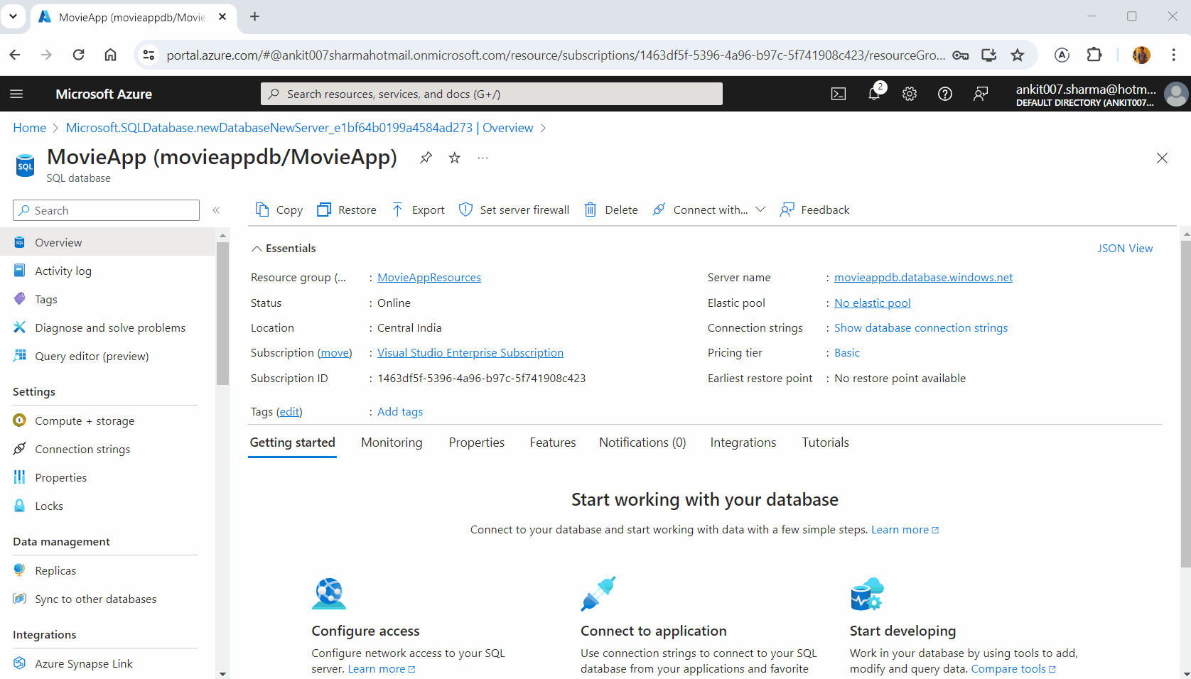 With your database now created, the next step is to set up access so that you can connect to it from your local machine and other Azure resources, like the Azure App Service.