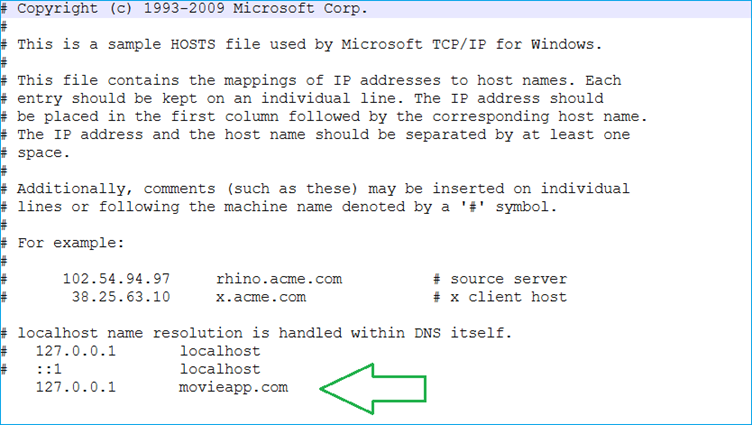 - Once the host file is open in Notepad, scroll to the end of the file and add a new line.