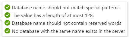 - Database name: Assign a unique name to your database, ensuring that the name adheres to the following validation criteria.