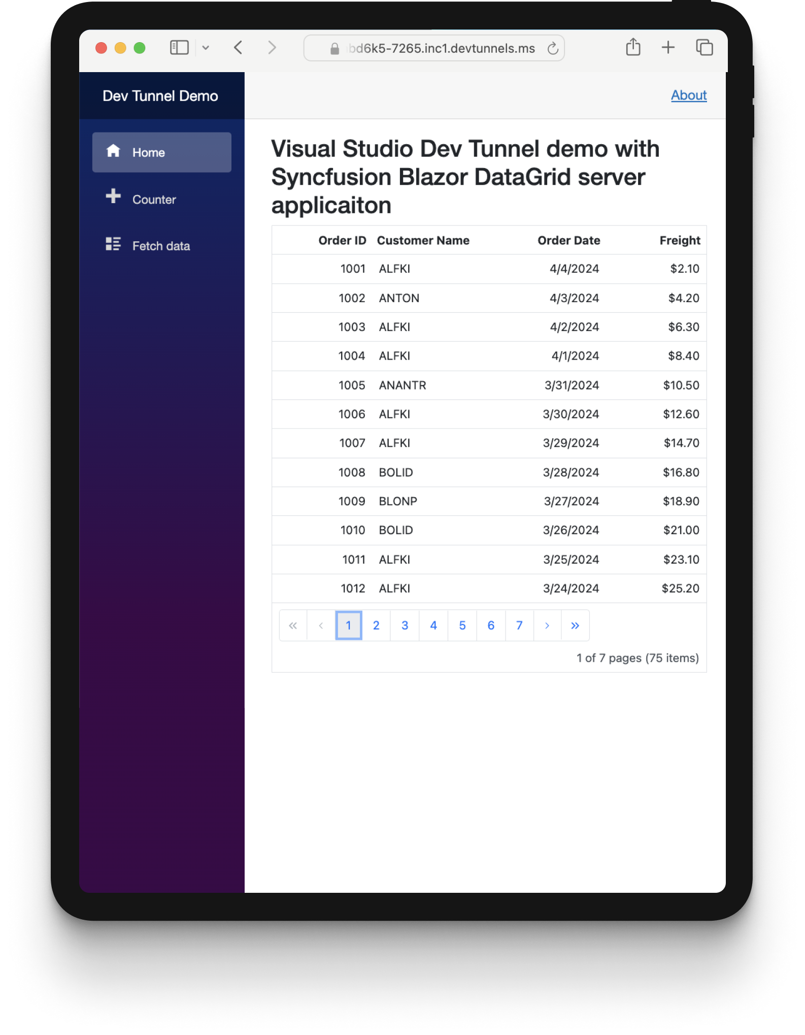 Setting up Dev Tunnel with Syncfusion Blazor Data Grid application