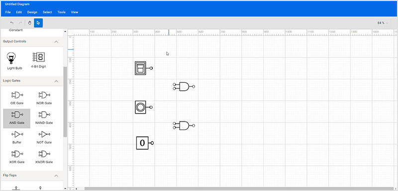 To add the logic circuit symbols in the editor, drag them from the symbol palette onto the diagramming canvas.