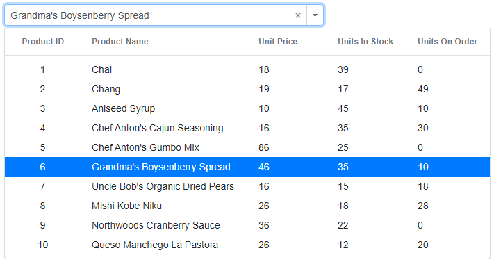 Example: Let’s suppose a user wants to select a product based on its unit price and the units in stock. In that scenario, they want a multicolumn combo box. This provides a quick and detailed glance at all relevant information about a product. We may also display more information, like units on order and discounts, with multicolumn view support.