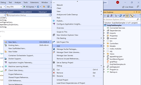 For more information, refer to the samples to improve front-end development with gulp in an ASP.NET Core application.
