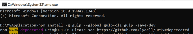 npm install -g gulp --global gulp-cli gulp –save-dev