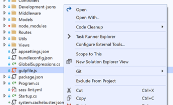 Open Solution Explorer, right-click gulpfile.js, and select Task Runner Explorer.