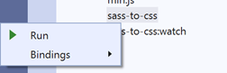 - Project Open: The binding tasks will be run when opening the app. We can add the “sass-to-css:watch” task to this.
