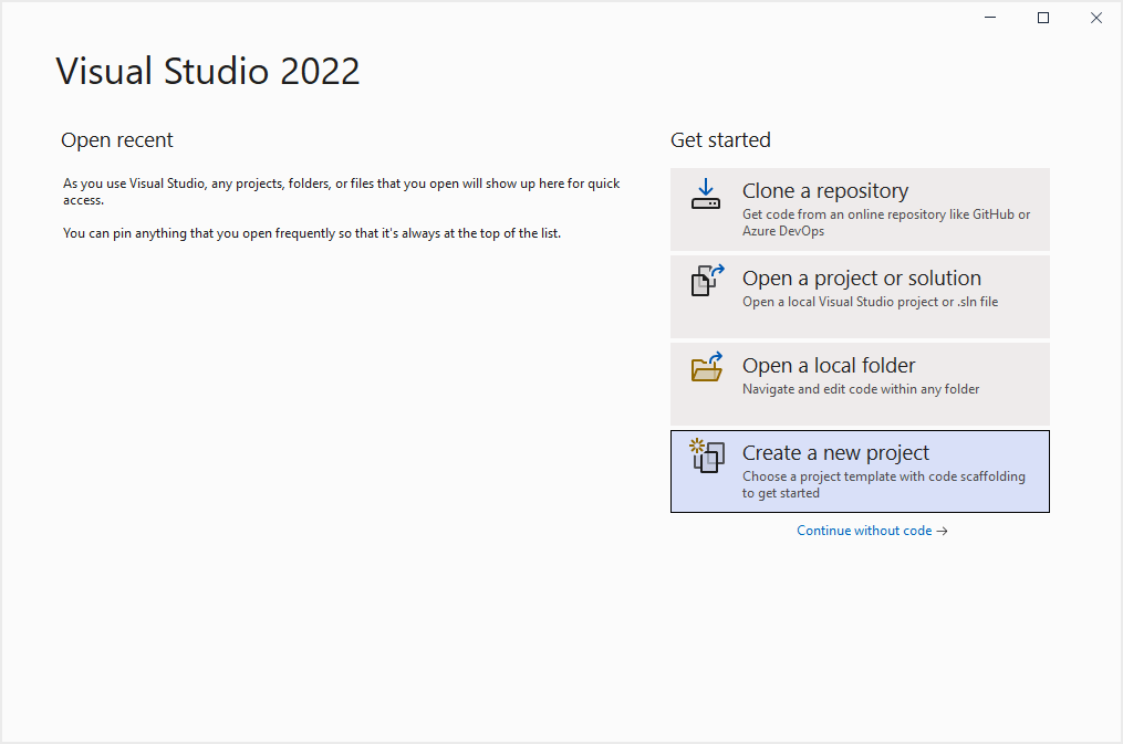 1. First, open Visual Studio 2022. Then, choose the Create a new project option.