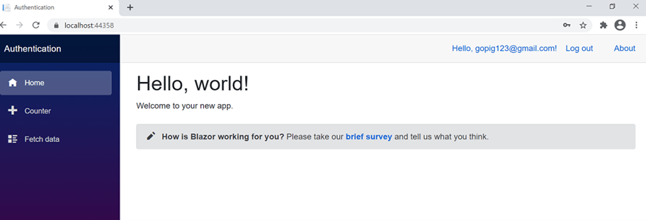 We’ll use the built-in AuthorizeView component in the Blazor application to show the user authentication state in the UI. We can also use the AuthorizeView to get the user details.