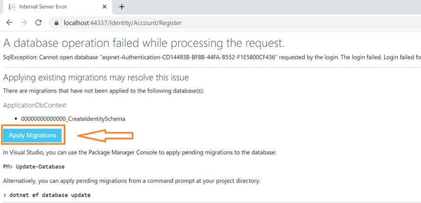 Step 7: After successfully registering the email ID and password, select Apply Migrations to set up the account details based on the database.