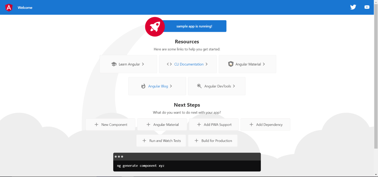When the CLI is done creating an Angular app, navigate to the app’s folder.