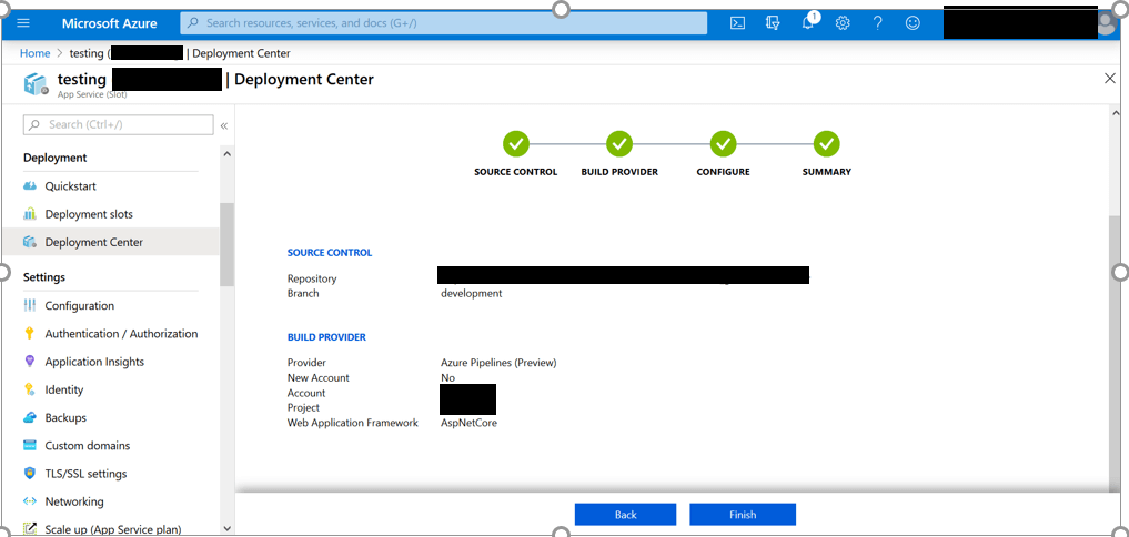 - Select Deployment Center under the Deployment menu of Publish App Service.