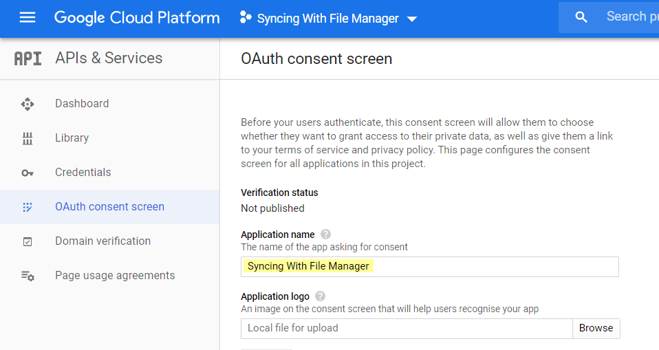 - Select API & Services-> OAuth consent screen, provide the application name, and click Save.