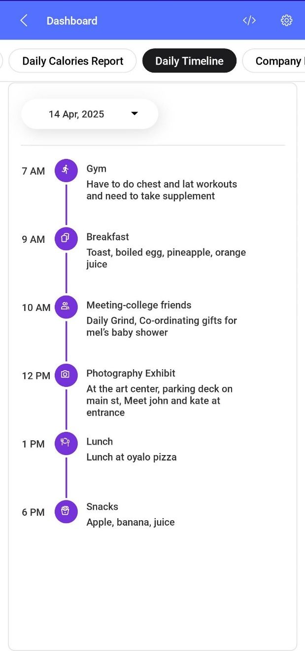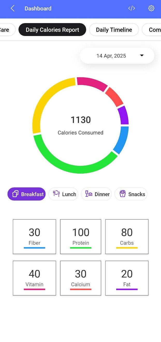 Visualize daily calorie consumption with pie charts and graphs to categorize food types and track calorie trends over time.