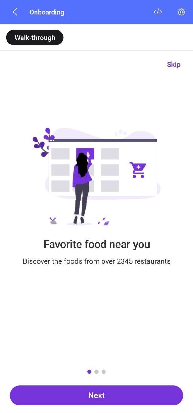 Engage new users with a guided app tour using swipeable screens that highlight core features. It includes visual cues and concise descriptions to simplify onboarding.